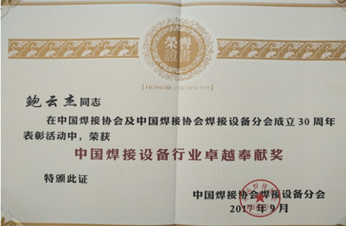 鮑云杰榮獲“中國焊接設(shè)備行業(yè)卓越奉獻(xiàn)獎(jiǎng)”榮譽(yù)