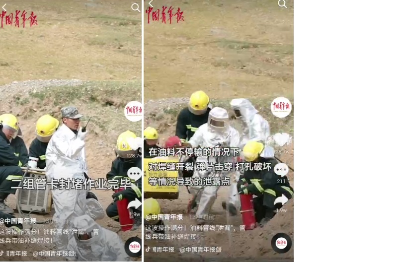 據(jù)《中國(guó)青年報(bào)》報(bào)道,9月19日西藏軍區(qū)青藏兵站某管線(xiàn)大隊(duì)組織實(shí)戰(zhàn)化輸油管線(xiàn)鋪設(shè)搶修演練。在油料不停輸情況下對(duì)焊縫開(kāi)裂,單片穿孔,打孔破壞等情況導(dǎo)致的泄露點(diǎn),官兵們采用補(bǔ)片焊接,管卡封堵,帶油焊接的方式對(duì)管線(xiàn)漏點(diǎn)組織搶修。 演練使用的時(shí)代焊機(jī)非常搶鏡,焊接設(shè)備也能守護(hù)邊防,我驕傲,我自豪!??!