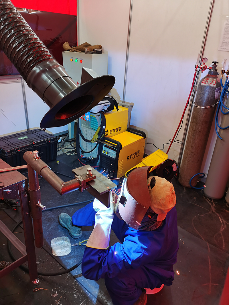 實操比賽開賽后,賽場充滿著令人亢奮的打磨聲和嘶嘶作響的燃弧聲。表情嚴肅的裁判員在賽場中來回踱步,行使著自己的職責。時代的服務人員不時來到場內(nèi)為選手提供必要的服務。競賽的專業(yè)性、規(guī)范性及穩(wěn)定運轉的時代焊機讓競賽緊張有序地進行著。