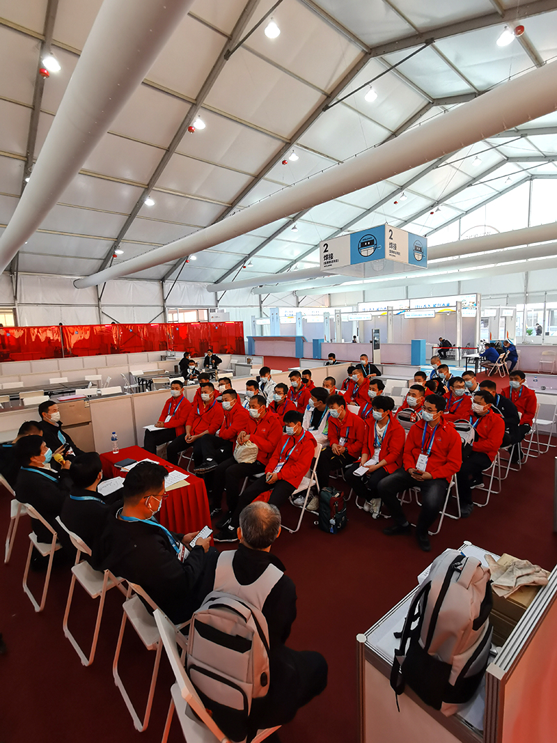 時代工作人員現(xiàn)場答疑 國賽精選賽場和世賽選拔賽賽場連接處