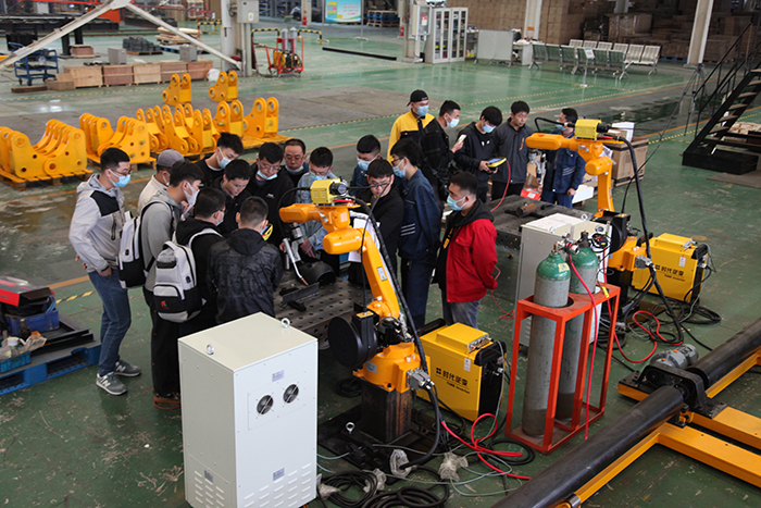 2021年4月26日,北京時(shí)代科技股份有限公司組織開(kāi)設(shè)的2021年第一期手工+機(jī)器人焊接技能提升班在濟(jì)南時(shí)代焊接工業(yè)園開(kāi)課了。全部課程為期5天,授課方式為技師現(xiàn)場(chǎng)授課、學(xué)員實(shí)操焊接練習(xí)。本次課程是時(shí)代公司精心籌劃的一個(gè)提升焊接專業(yè)學(xué)員機(jī)器人操作水平的培訓(xùn)課。授課老師均為時(shí)代公司高級(jí)焊接技師。培訓(xùn)設(shè)備為時(shí)代6公斤弧焊機(jī)器人、時(shí)代PNE61-400氬弧手工兩用焊機(jī),時(shí)代全數(shù)字TDN 5001MB氣保焊機(jī)、A160-350半自動(dòng)氣保焊機(jī)等。參加培訓(xùn)的學(xué)員全部為國(guó)內(nèi)職業(yè)院校系統(tǒng)內(nèi)的年輕學(xué)員和教師。本次培訓(xùn)內(nèi)容主要以實(shí)際操作為主,焊接理論為輔。實(shí)操內(nèi)容包括焊條電弧焊、熔化極氣體保護(hù)焊、鎢極氬弧焊和機(jī)器人熔化極混合氣體保護(hù)焊等。