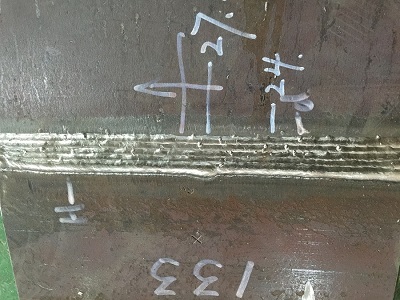 第一模塊由四組低碳鋼試件組成,10mm對接仰焊板(如圖1)、管管對接45度固定(如圖2)、16mm板橫焊(如圖3)和板立角焊(如圖4),焊接方法要根據(jù)抽簽確定,這四組低碳鋼試件中,從技術(shù)層面上講,全手工焊條焊接的仰焊板和45度管管對接焊難度較大,由于仰焊板在歷屆焊接技能大賽的賽項(xiàng)上都必不可少,所以在操作技能上各家都有所掌握,所比的是誰家的基本功更扎實(shí),技術(shù)掌握得更到位。45度管管對接電弧焊的難點(diǎn)個(gè)人認(rèn)為有兩點(diǎn),第一是打底階段每一個(gè)接頭的處理及焊接后在保證背面成型好的基礎(chǔ)上,焊縫正面是否有較深?yuàn)A溝或焊肉下垂的現(xiàn)象,從而影響蓋面后的焊縫內(nèi)在質(zhì)量。第二個(gè)難點(diǎn)是蓋面焊接要做到焊縫對咬邊的控制,通過焊接過程中的斜拉擺動(dòng)來控制好熔池走向,使焊肉不出現(xiàn)下垂和咬邊。從本次大賽的45度管管焊的總體成績來看,由于焊接過程中允許進(jìn)行電動(dòng)工具打磨處理,所以對于內(nèi)在質(zhì)量的控制都做得還不錯(cuò),65名選手中射線探傷0分的只有8人。選手中外觀分?jǐn)?shù)丟分的較多,滿分50分中,最高得分也只有36分,可見該項(xiàng)目還是有一定的難度。