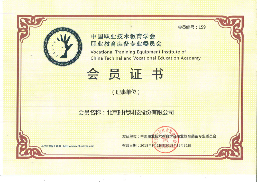 2018-01 中國職業(yè)技術教育學會職業(yè)教育裝備專業(yè)委員會會員證書 中國職業(yè)技術教育學會