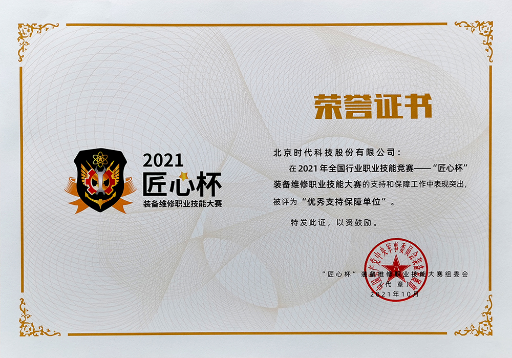 2021-12 2021年“匠心杯”裝備維修職業(yè)技能大賽證書 中國共產黨中央軍事委員會裝備發(fā)展部