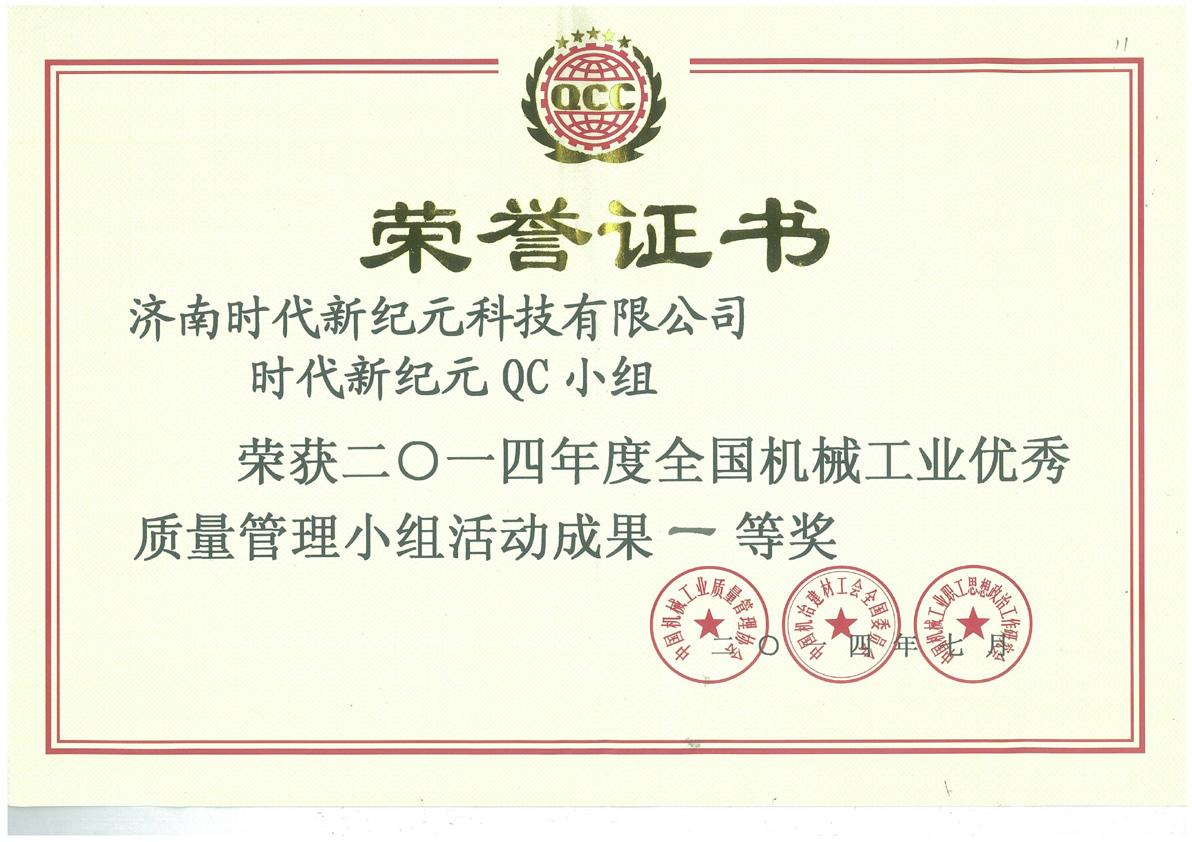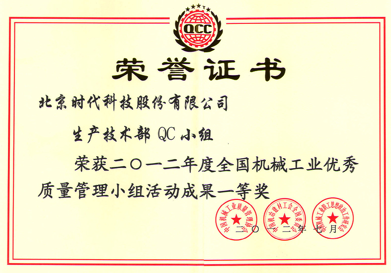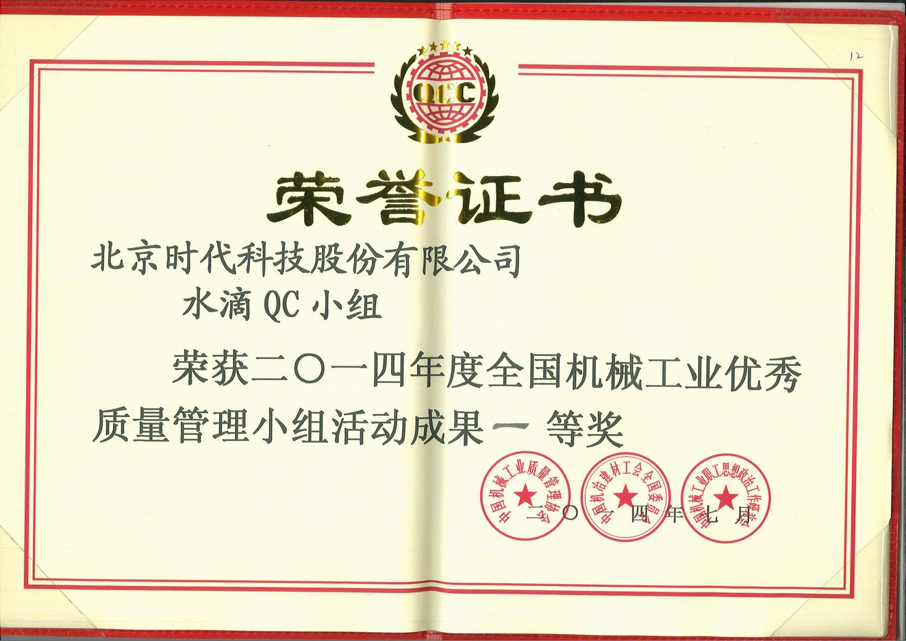 2014-08 2014年全國機械工業(yè)優(yōu)秀質量管理小組獎 一等獎 中國機械工業(yè)質量管理協(xié)會