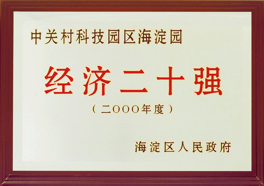 2002-04 中關村科技園區(qū) 2000 年度經濟二十強企業(yè) 海淀區(qū)人民政府