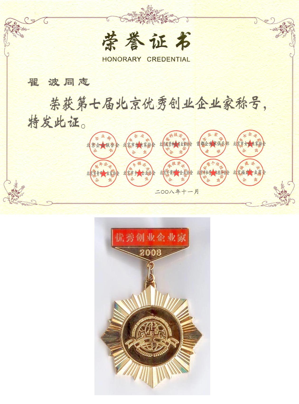 2008-11 第七屆北京優(yōu)秀創(chuàng)業(yè)企業(yè)家 北京企業(yè)聯合會、北京企業(yè)家協(xié)會