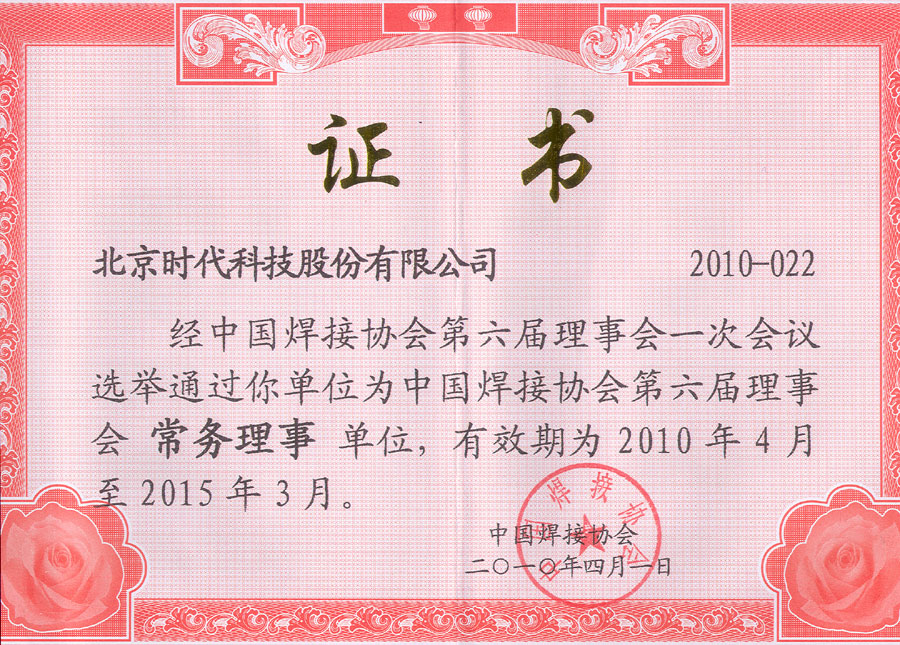 2010-04 中國焊接協(xié)會第六屆理事會常務理事單位 中國焊接協(xié)會