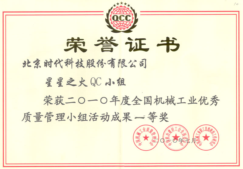 2010-07 全國機械工業(yè)優(yōu)秀質量管理小組活動成果一等獎 中國機械工業(yè)質量管理協(xié)會