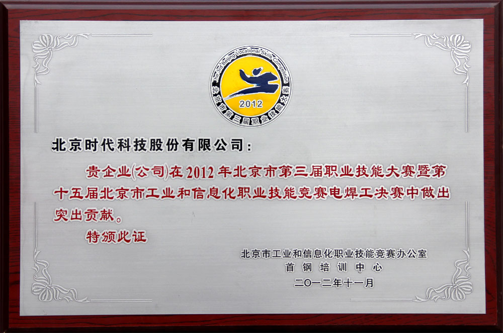 2012-11 北京市第三屆職業(yè)技能大賽 突出貢獻獎 北京市工業(yè)和信息化職業(yè)技能競賽辦公室