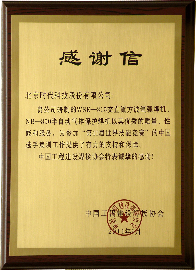 2011-06 參與世界技能大賽感謝信 中國工程建設焊接協(xié)會