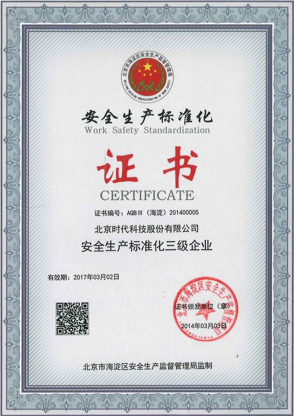 2014-04 安全生產標準化證書 北京市海淀區(qū)安全生產監(jiān)督管理局