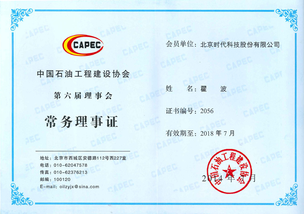 2014-08 中國石油工程建設協(xié)會常務理事證 中國石油工程建設協(xié)會