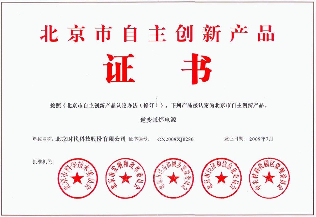 2009-07 北京市自主創(chuàng)新產品(逆變弧焊電源) 北京市科學技術委員會