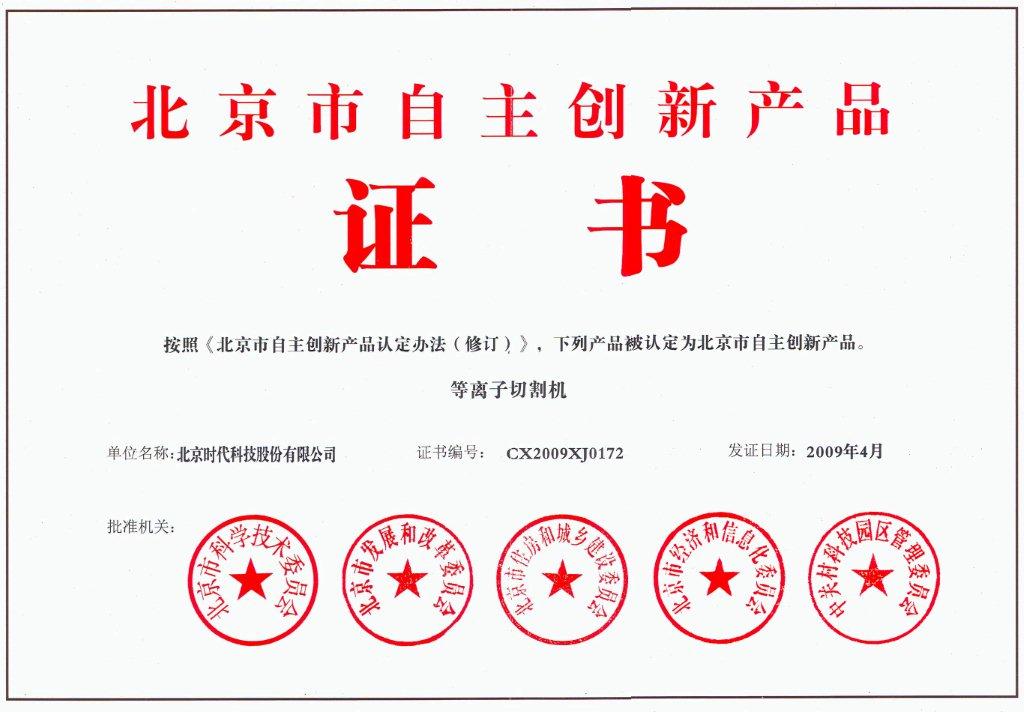 2009-04 北京市自主創(chuàng)新產品(等離子切割機) 北京市科學技術委員會