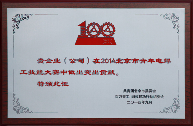 2014-12 北京市青年電焊工技能大賽 突出貢獻獎 共青團北京市委員會