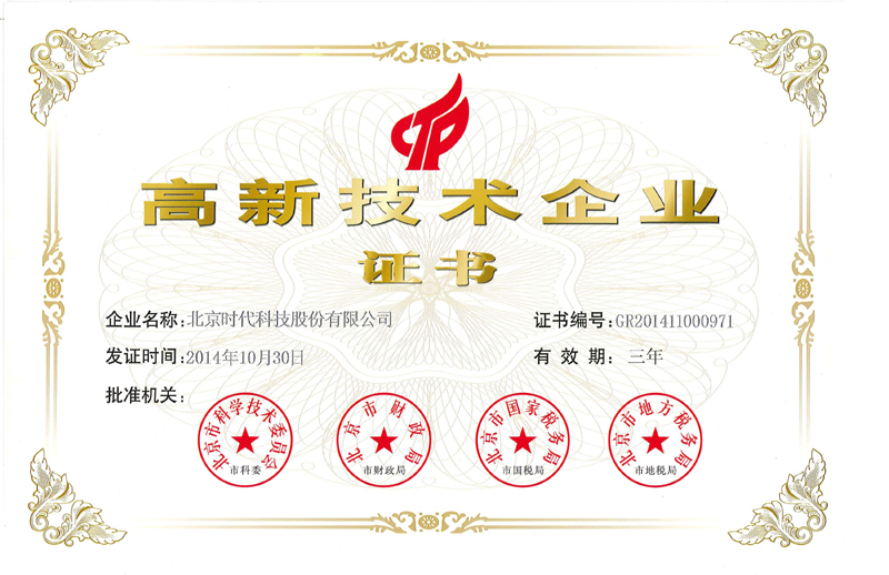 2015-01 高新技術企業(yè) 證書 北京市科學技術委員會