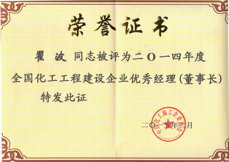 2015-02 2014年度全國化工工程建設單位 優(yōu)秀經理(董事長) 中國化工施工企業(yè)協(xié)會