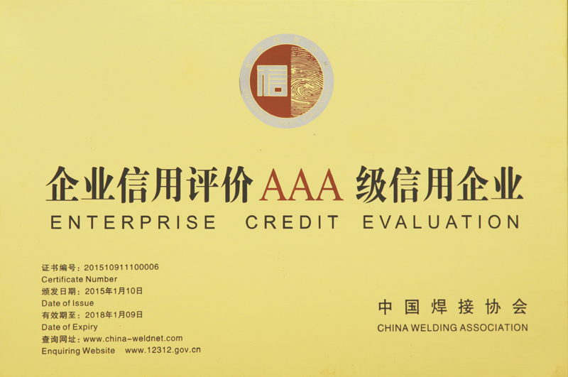 2015-03 企業(yè)信用評價AAA級信用企業(yè) 中國焊接協(xié)會