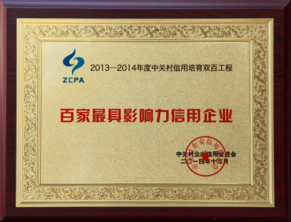2014-12 百家最具影響力信用企業(yè) 中關村企業(yè)信用促進會