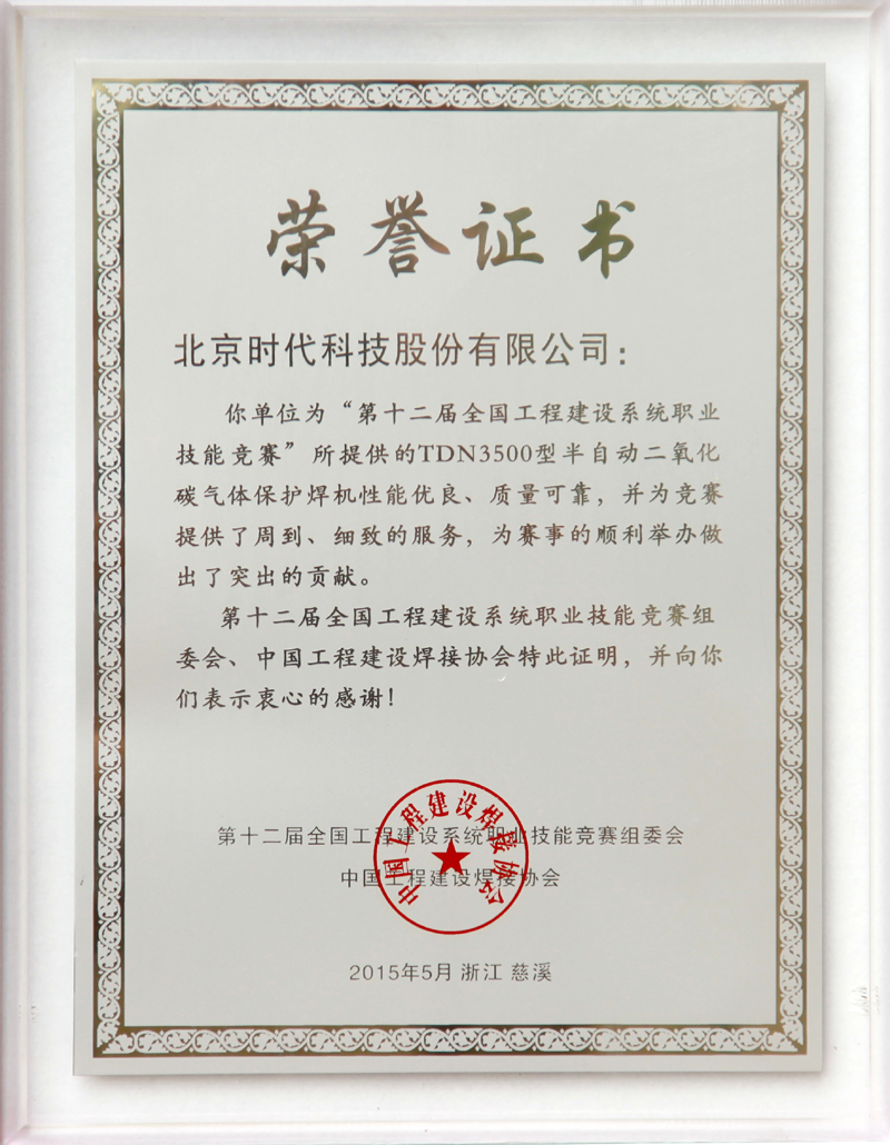 2015-05 第十二屆全國工程建設系統(tǒng)職業(yè)技能競賽榮譽證書 中國工程建設焊接協(xié)會