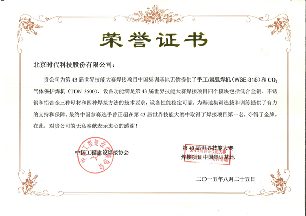 2015-08 第43屆世界焊接大賽焊接項目集訓用機 中國工程建設焊接協(xié)會