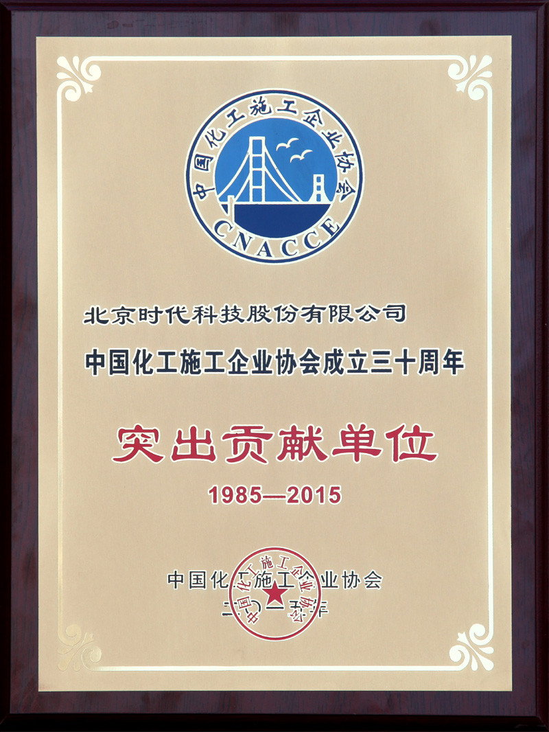 2015-10 中國化工施工企業(yè)協(xié)會成立三十周年 突出貢獻單位 中國化工施工企業(yè)協(xié)會