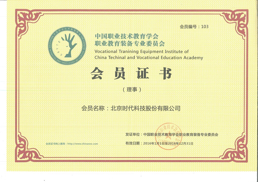 2016-03 中國職業(yè)技術教育學會職業(yè)教育裝備專業(yè)委員會會員證書 中國職業(yè)技術教育學會職業(yè)教育裝備專業(yè)委員會