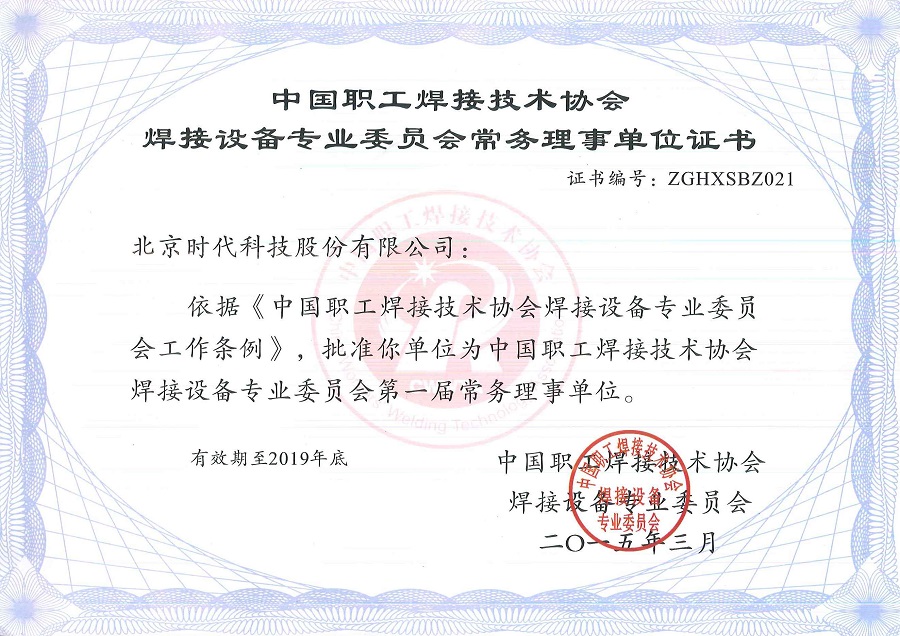 2016-04 中國職工焊接技術協(xié)會 焊接設備專業(yè)委員會常務理事單位證書 中國職工焊接技術協(xié)會 焊接設備專業(yè)委員會