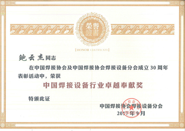 2017-09 中國焊接設備行業(yè)卓越奉獻獎 中國焊接協(xié)會焊接設備分會